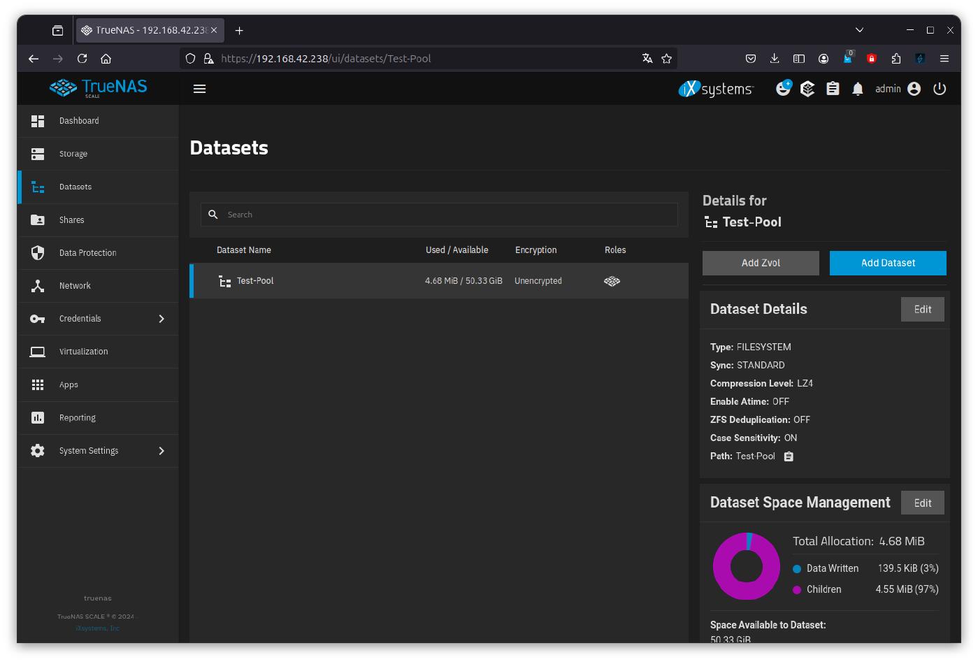 Veröffentlicht am 20. August 2024 (Zuletzt verändert am 4. November 2025) • 3 Min. Lesezeit • 573 WörterSobald TrueNAS über einen Daten-Pool verfügt, kann dieser Speicher, z.B. über eine Samba-Freigabe, Windows oder Linux-Systemen im Heimnetz zur Verfügung gestellt werden.