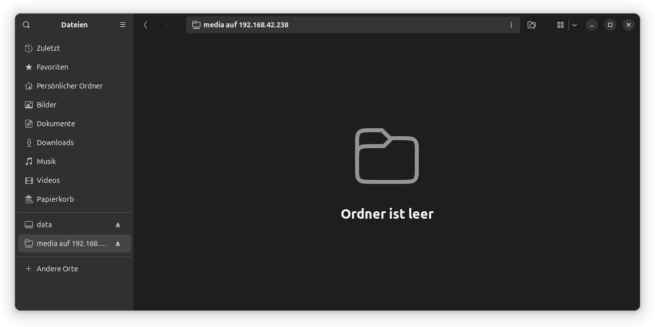 Media erfolgreich in mein System eingebunden und stehe nun vor einem leeren Ordner.
