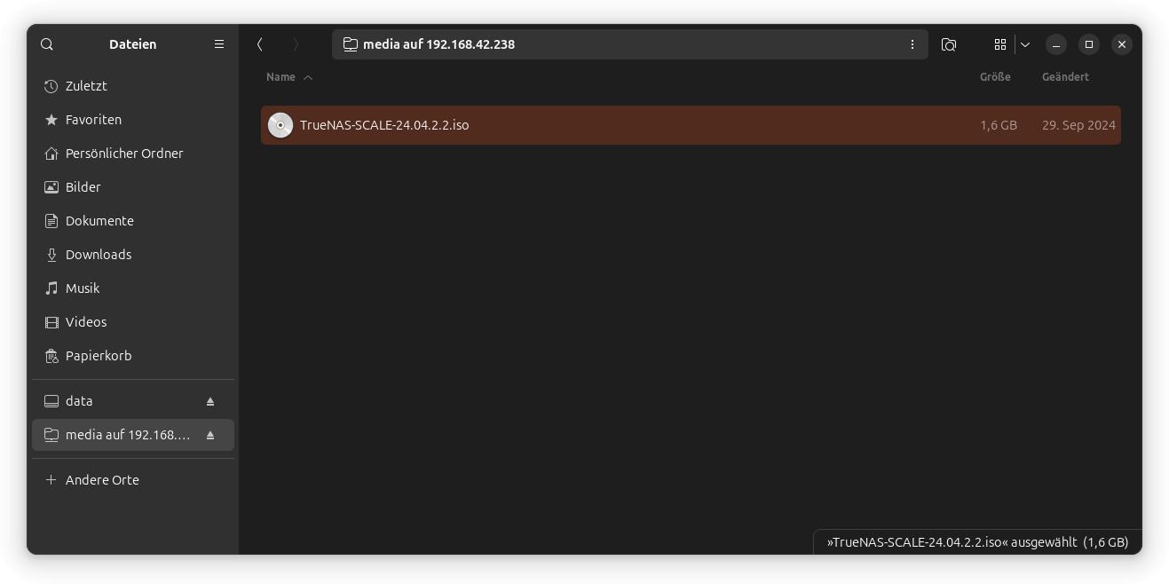 Als Test kopiere ich das TrueNAS ISO-Image in die Freigabe…