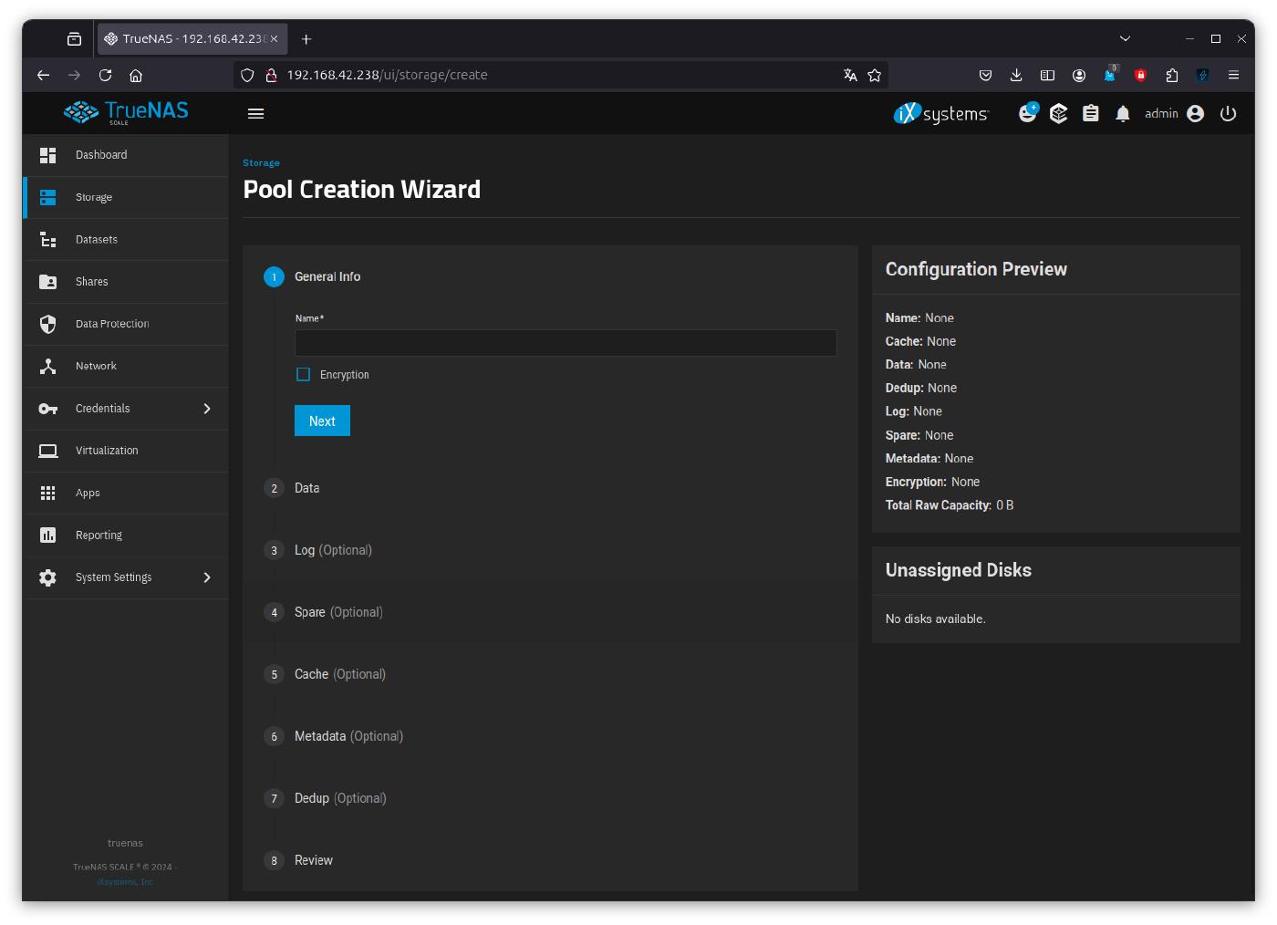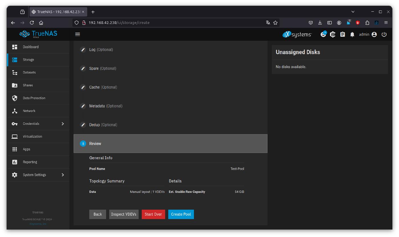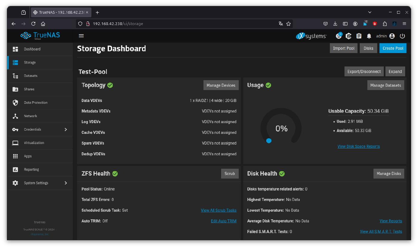 In Configuring TrueNAS - Create a Samba Share we’ll finally use the data pool to expose a Samba network share in our network.