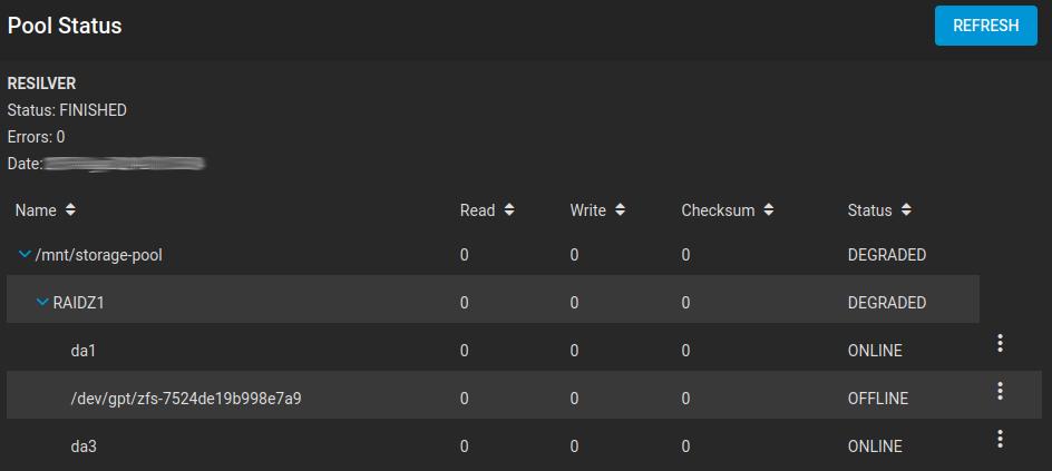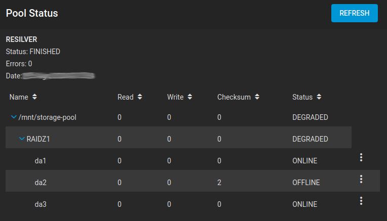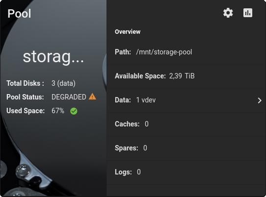 Some time ago, the dashboard of my backup NAS alerted me to a problem in the storage pool. Instead of the regular pool status ‘ONLINE’, the pool status ‘DEGRADED’ was now reported, along with a friendly message sign.